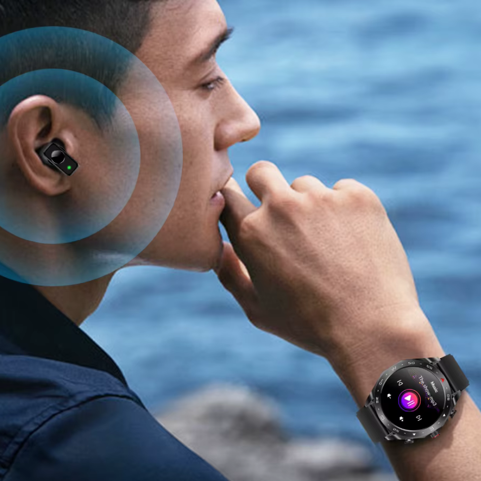 ساعة ذكية جديدة مع سماعات أذن، شاشة HD عالية الدقة بحجم 1.52 بوصة، سماعات لاسلكية TWS ,متوافقة مع iPhone وأندرويد